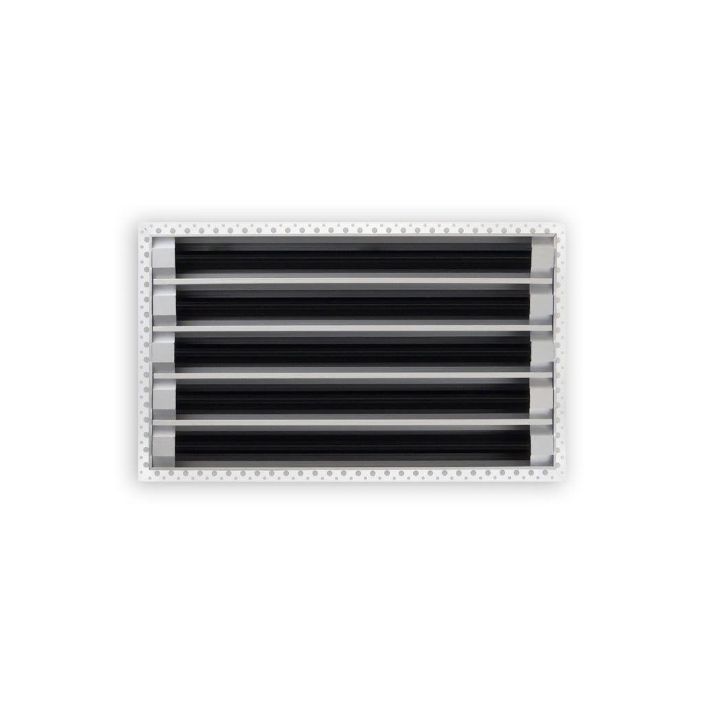 • Texas Buildmart offers Mud In Air Vent Covers also known as Drywall Mud-in White Air Vents. This Mud In Air Vent Cover shoots a 90-degree spread with option to adjust to one side or the other. These have decorative directional dampers. Modern, crisp, clean lines and architecturally appealing. Solid extruded aluminum profile, expertly welded, grinded, and sanded, with reinforcement brackets on the back and a uniform coat of electrostatic paint for a sleek, modern finish and easy maintenance. This white air vent register can be used as a supply air vent cover for ceilings and walls and as a return air vent cover register but looks like a Luxury Drywall Mud-in Vent Cover. If our Mud In Air Vent Cover is used as a Return air vent cover, please make sure the air vent cover is placed in the full open position or remove the directional dampers. Update your Ceiling and Wall Vents with our Mud In Air Vent Covers and it will update the entire look of your Home or Office Space. Rejillas para aire acondicionado de casa blanco. We make all sizes from 6x4 to 30x24 Modern Mud Air Vent Covers for the Modern Day Home. *This is a Design and Utility Patent Pending Product*