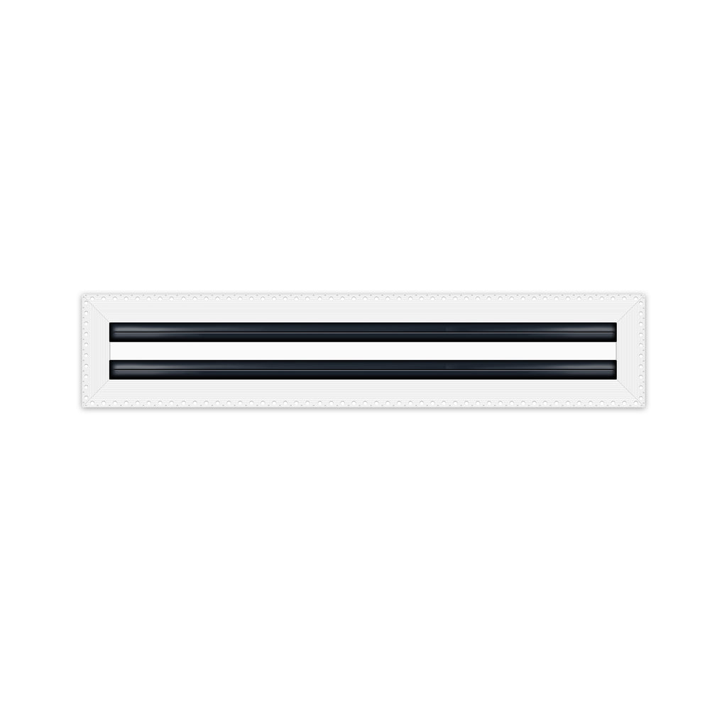 Linear slot diffusers are a type of air diffuser used in heating, ventilation, and air conditioning (HVAC) systems. They are designed to distribute conditioned air evenly throughout a room or space. Linear slot diffusers typically consist of a long, narrow slot or opening that runs along the length of the diffuser. Air is distributed through this slot, and then spread out into the room by a series of slots which each contain deflectors (dampers) that are located within the diffuser slots. Linear slot diffusers are often used in commercial and industrial buildings, such as office buildings, schools, and hospitals, because of their ability to distribute large amounts of air over a wide area. They are also often used in buildings with high ceilings, such as airports, atriums and shopping centers. Linear slot diffusers also come in a variety of sizes and designs to match the specific needs of a building. They can be ceiling-mounted, wall-mounted, or floor-mounted and are made of 100% aluminum. Some can have adjustable slots to control the airflow direction or be equipped with deflectors (dampers) to control the airflow volume. They are commonly used in commercial and industrial buildings, as well as buildings with high ceilings. Ours come in a variety of sizes from 12" to 72” in 1-2-3 Slot Linear Diffusers.