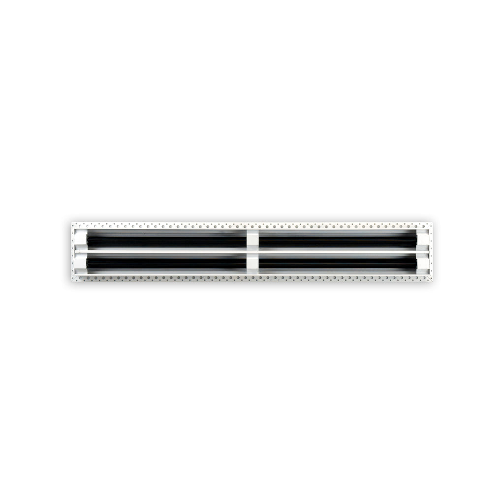 Linear slot diffusers are a type of air diffuser used in heating, ventilation, and air conditioning (HVAC) systems. They are designed to distribute conditioned air evenly throughout a room or space. Linear slot diffusers typically consist of a long, narrow slot or opening that runs along the length of the diffuser. Air is distributed through this slot, and then spread out into the room by a series of slots which each contain deflectors (dampers) that are located within the diffuser slots. Linear slot diffusers are often used in commercial and industrial buildings, such as office buildings, schools, and hospitals, because of their ability to distribute large amounts of air over a wide area. They are also often used in buildings with high ceilings, such as airports, atriums and shopping centers. Linear slot diffusers also come in a variety of sizes and designs to match the specific needs of a building. They can be ceiling-mounted, wall-mounted, or floor-mounted and are made of 100% aluminum. Some can have adjustable slots to control the airflow direction or be equipped with deflectors (dampers) to control the airflow volume. They are commonly used in commercial and industrial buildings, as well as buildings with high ceilings. Ours come in a variety of sizes from 12" to 72” in 1-2-3 Slot Linear Diffusers.