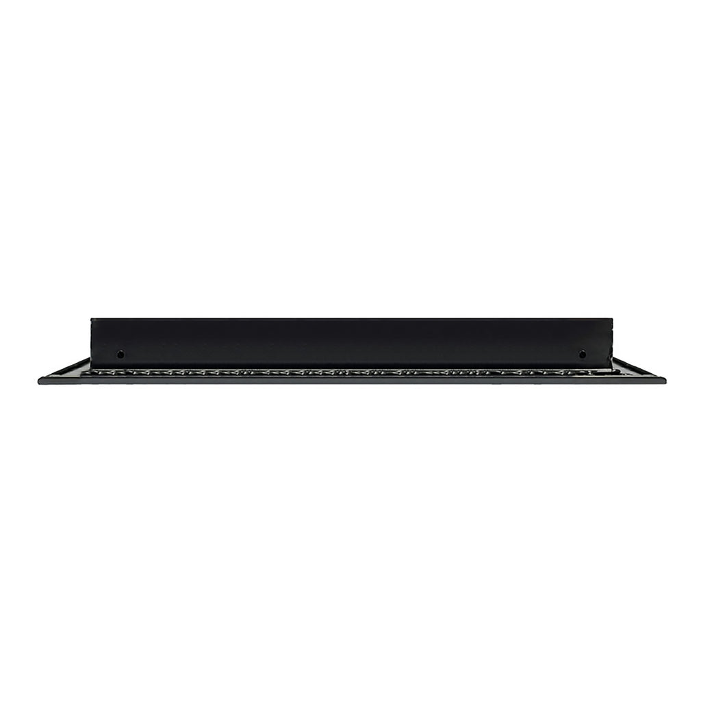 - Texas Buildmart offers Modern AC Vent Covers also known as High Quality Standard Linear Slot Diffusers. This Modern AC Vent Cover shoots a 90-degree spread with option to adjust to one side or the other. These have decorative directional dampers. Modern, crisp, clean lines and architecturally appealing. Solid extruded aluminum profile with welding - Electrostatic Paint which makes it easy to clean because of its dust-resistance. This black air vent register can be used as a supply air vent cover for ceilings, walls, and floors. This vent cover was designed to be decorative and not structural. You can use this as a floor vent cover, but it is not designed to support weight, adding any type of weight is not recommended. This vent can be used as a return air vent cover as well. This register is not only a vent cover, but it looks like a Modern Contemporary looking fixture. If our Modern AC Vent Cover is used as a Return air vent cover, please make sure the air vent cover is placed in the full open position or remove the directional dampers. Update your Ceilings, Walls & Floor Vents with our Modern AC Vent Covers and it will update the entire look of your Home or Office Space. Rejillas para aire acondicionado de casa negro. We make all sizes from 6x4 to 30x24 Standard Sized Modern AC Vent Covers for the Modern Day Home. *This is a Design and Utility Patent Pending Product*