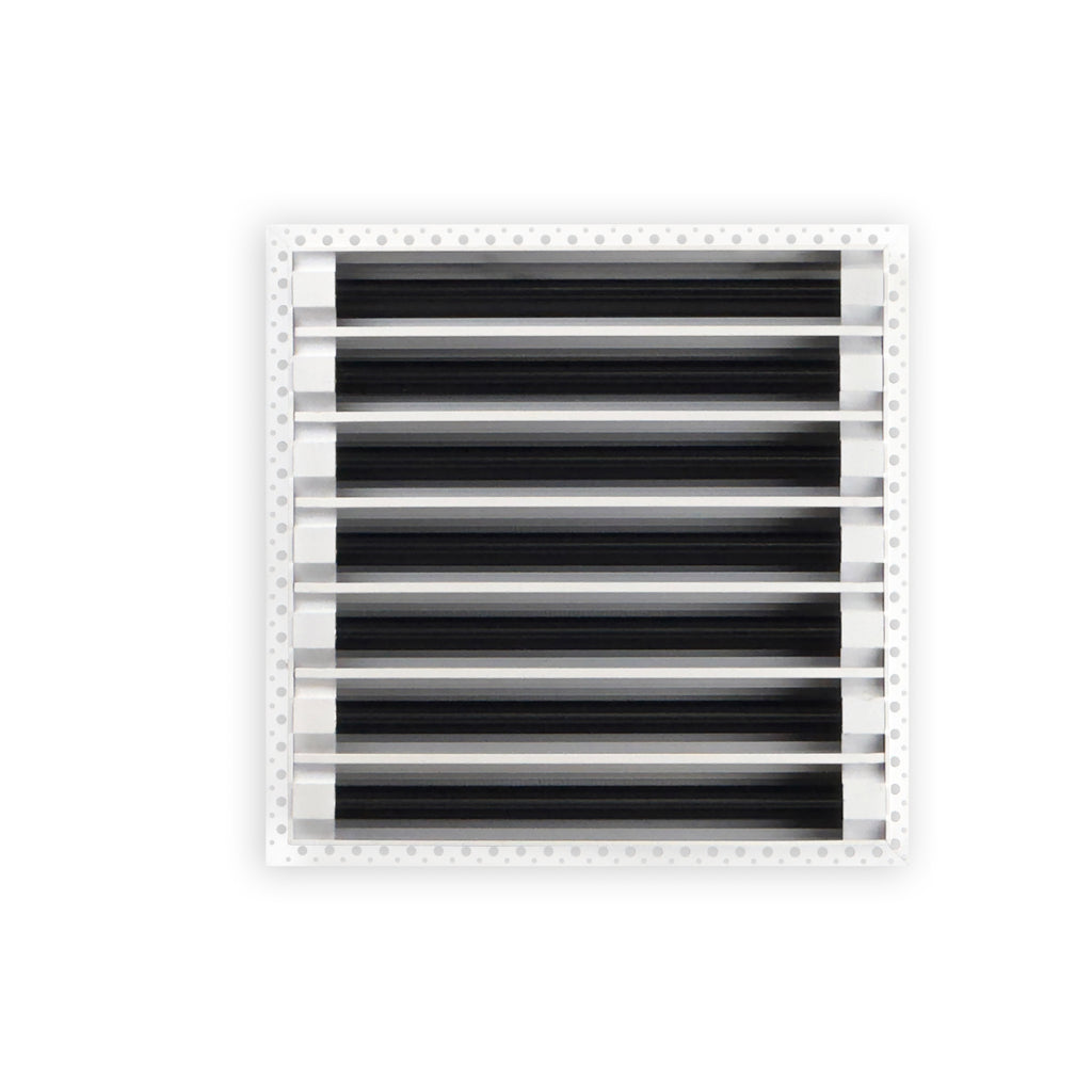 • Texas Buildmart offers Mud In Air Vent Covers also known as Drywall Mud-in White Air Vents. This Mud In Air Vent Cover shoots a 90-degree spread with option to adjust to one side or the other. These have decorative directional dampers. Modern, crisp, clean lines and architecturally appealing. Solid extruded aluminum profile, expertly welded, grinded, and sanded, with reinforcement brackets on the back and a uniform coat of electrostatic paint for a sleek, modern finish and easy maintenance. This white air vent register can be used as a supply air vent cover for ceilings and walls and as a return air vent cover register but looks like a Luxury Drywall Mud-in Vent Cover. If our Mud In Air Vent Cover is used as a Return air vent cover, please make sure the air vent cover is placed in the full open position or remove the directional dampers. Update your Ceiling and Wall Vents with our Mud In Air Vent Covers and it will update the entire look of your Home or Office Space. Rejillas para aire acondicionado de casa blanco. We make all sizes from 6x4 to 30x24 Modern Mud Air Vent Covers for the Modern Day Home. *This is a Design and Utility Patent Pending Product*