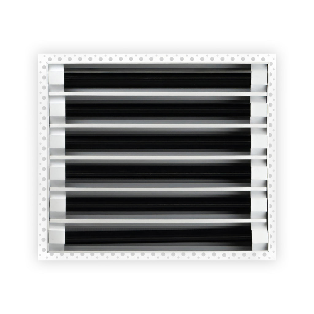 • Texas Buildmart offers Mud In Air Vent Covers also known as Drywall Mud-in White Air Vents. This Mud In Air Vent Cover shoots a 90-degree spread with option to adjust to one side or the other. These have decorative directional dampers. Modern, crisp, clean lines and architecturally appealing. Solid extruded aluminum profile, expertly welded, grinded, and sanded, with reinforcement brackets on the back and a uniform coat of electrostatic paint for a sleek, modern finish and easy maintenance. This white air vent register can be used as a supply air vent cover for ceilings and walls and as a return air vent cover register but looks like a Luxury Drywall Mud-in Vent Cover. If our Mud In Air Vent Cover is used as a Return air vent cover, please make sure the air vent cover is placed in the full open position or remove the directional dampers. Update your Ceiling and Wall Vents with our Mud In Air Vent Covers and it will update the entire look of your Home or Office Space. Rejillas para aire acondicionado de casa blanco. We make all sizes from 6x4 to 30x24 Modern Mud Air Vent Covers for the Modern Day Home. *This is a Design and Utility Patent Pending Product*