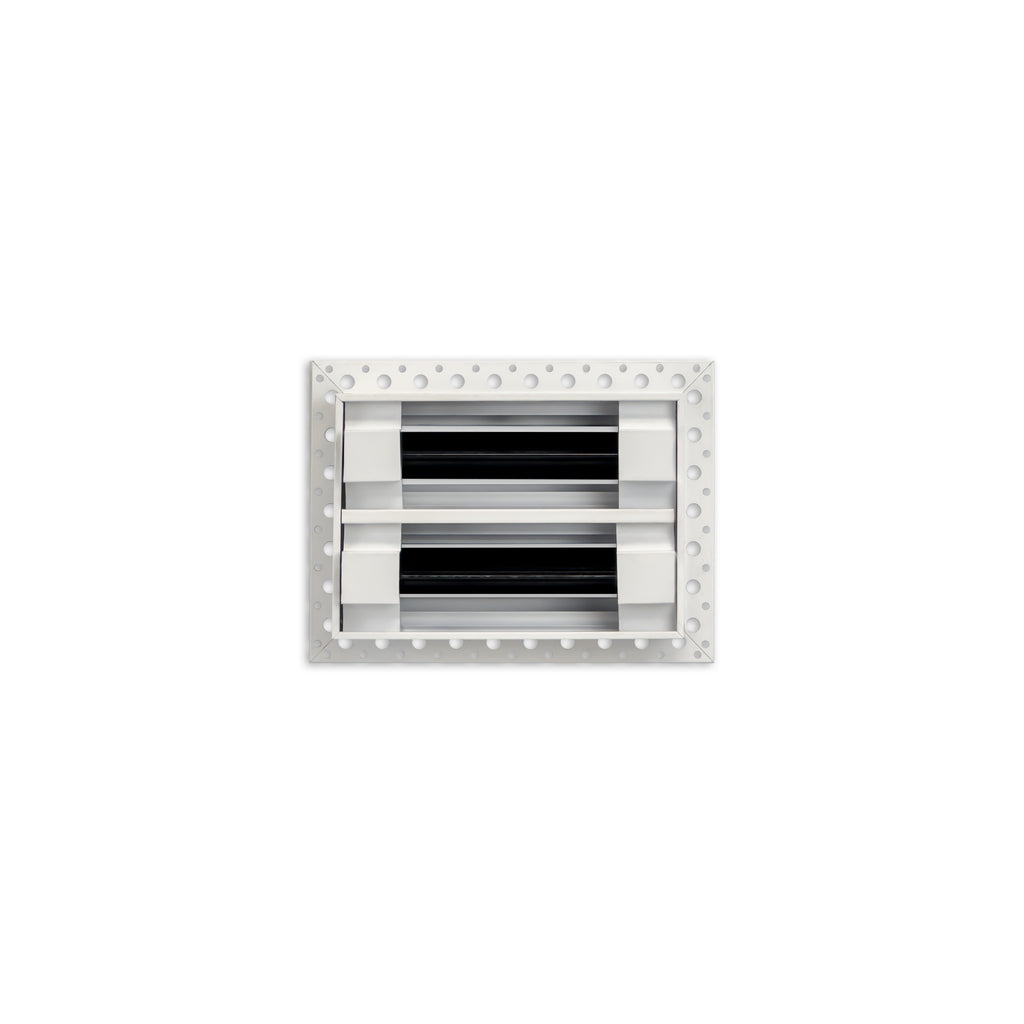- Texas Buildmart offers Mud In Air Vent Covers also known as Drywall Mud-in White Air Vents. This Mud In Air Vent Cover shoots a 90-degree spread with option to adjust to one side or the other. These have decorative directional dampers. Modern, crisp, clean lines and architecturally appealing. Solid extruded aluminum profile, expertly welded, grinded, and sanded, with reinforcement brackets on the back and a uniform coat of electrostatic paint for a sleek, modern finish and easy maintenance. This white air vent register can be used as a supply air vent cover for ceilings and walls and as a return air vent cover register but looks like a Luxury Drywall Mud-in Vent Cover. If our Mud In Air Vent Cover is used as a Return air vent cover, please make sure the air vent cover is placed in the full open position or remove the directional dampers. Update your Ceiling and Wall Vents with our Mud In Air Vent Covers and it will update the entire look of your Home or Office Space. Rejillas para aire acondicionado de casa blanco. We make all sizes from 6x4 to 30x24 Modern Mud Air Vent Covers for the Modern Day Home. *This is a Design and Utility Patent Pending Product*
